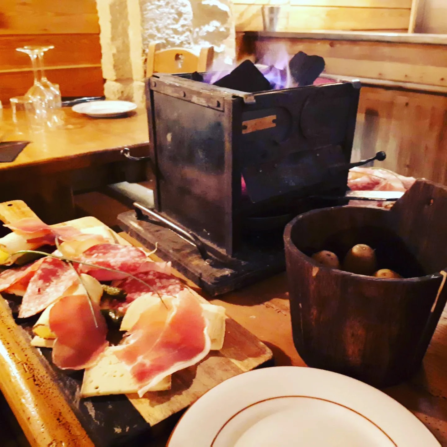 Un des meilleurs restaurants de fondues et raclettes que j'ai visité. Le décor et la présentation! Raclette avec braseros au charbon.